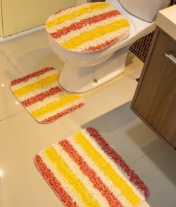 Jogo Banheiro Carpete Decorado - 3 Peças